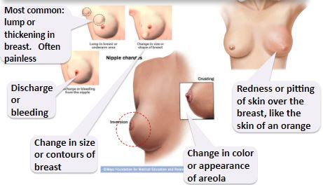 To detect the breast cancer at a very early stage, it is important to perform self- breast examination and go for regular screenings. Symptoms of breast cancer vary from person to person. Some do not experience any signs or symptoms at all. However, some most common signs of breast cancer are: